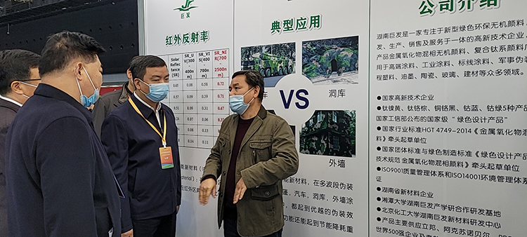 展会期间,湘潭市吴志雄副市长、贸促、工信、发改等各政府部门领导一行莅临湖南HTH(中国)一站式服务官网展厅(A449)参观指导。我公司总工程师王文强先生等工作人员热情接待副市长一行。王文强总工程师向吴市长一行介绍了湖南HTH(中国)一站式服务官网近年来,不断斥巨资对5G通讯新材料及新型环保无机颜料等进行探讨与摸索,陆续研制出5G通讯用LDS新材料、红外反射无机新材料,环保混相无机颜料等系列品种,现已逐步推向市场。吴市长一行领导对湖南HTH(中国)一站式服务官网对公司不断发展壮大的行业规模和日益广阔的发展前景给予了充分肯定,并对今后企业的发展、竞争方向提出了建议。吴市长希望公司在下阶段工作中,不断巩固现有技术优势的基础,进一步加大科研投入力度,不断拓宽、创新销售思路,坚持高起点、高标准、高要求的管理模式,准确把握产品质量关,不断提高环保新材料系列产品在国内外的知名度和美誉度。