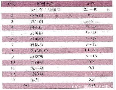通过国内外有机硅树脂性能对比和高温颜料(MMO高温颜料)、耐高温低熔点陶瓷粉、低熔点玻璃粉及云母粉、石英粉等无机硅酸盐填料和助剂的选择,我们摘选各色有机硅耐热涂料建议配比和试验检测结果。检测数据显示各色有机硅耐热涂料不仅具有优异的耐高温性能,而且还具有优良的耐盐雾、耐人工老化、天然暴晒等防腐、耐候性能,是理想的室内外高温防腐保护涂料,色彩选择性明显增强,装饰性提高,可广泛应用于高温设备如高炉、壁炉、锅炉、热风炉内外壁、烟囱、焰道、排气管、热交换气工艺品、油气田管道及设备、炼钢设备及管道等领域,市场前景非常广阔。