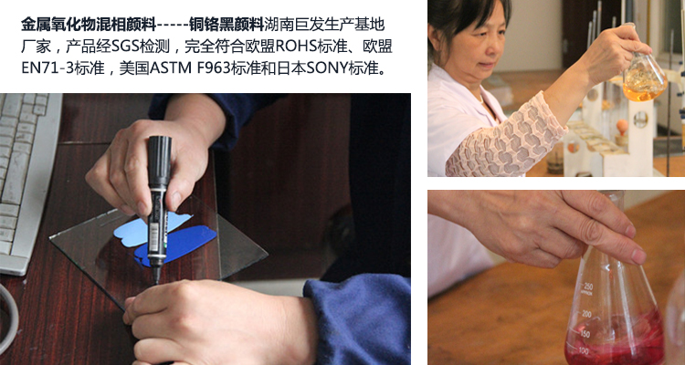 HTH平台是国内专业的金属氧化物混相颜料-----铜铬黑颜料生产基地厂家,产品经SGS检测,完全符合欧盟ROHS标准、欧盟EN71-3标准,美国ASTM F963标准和日本SONY标准。